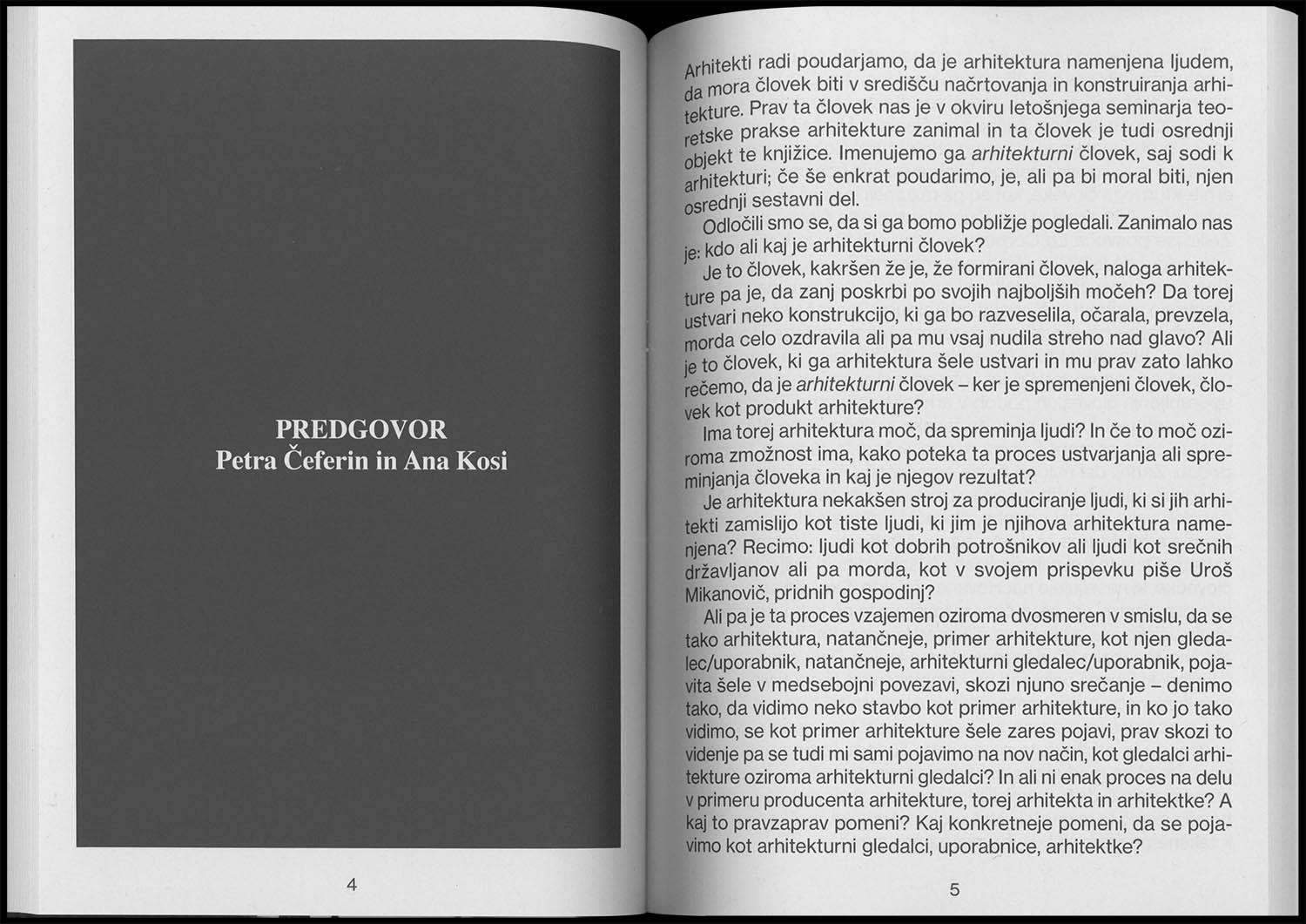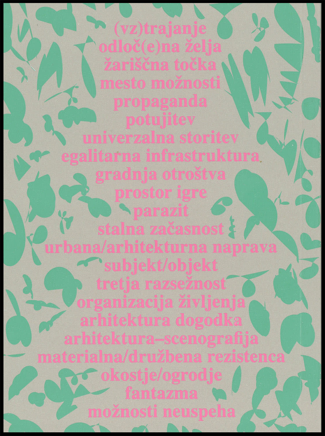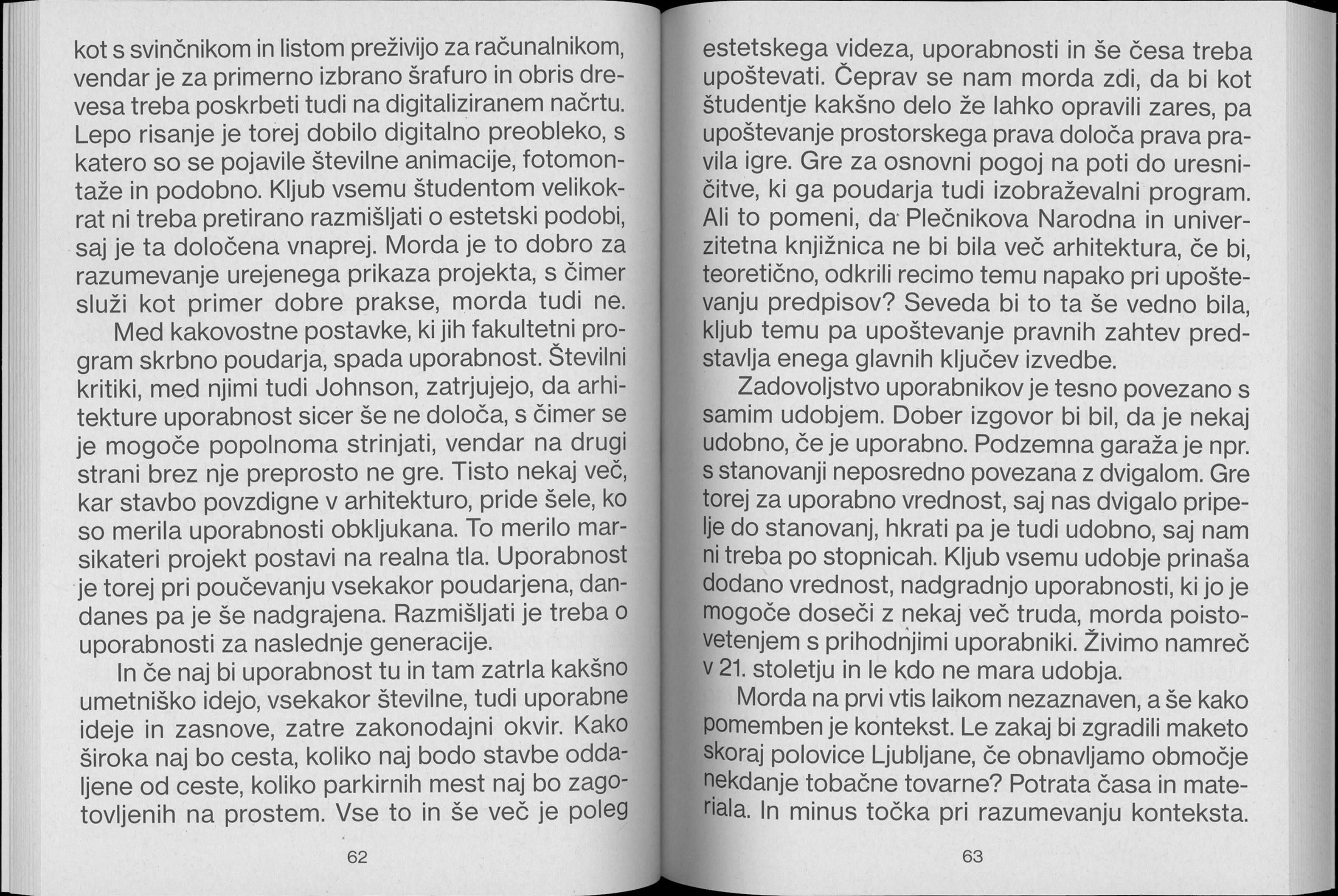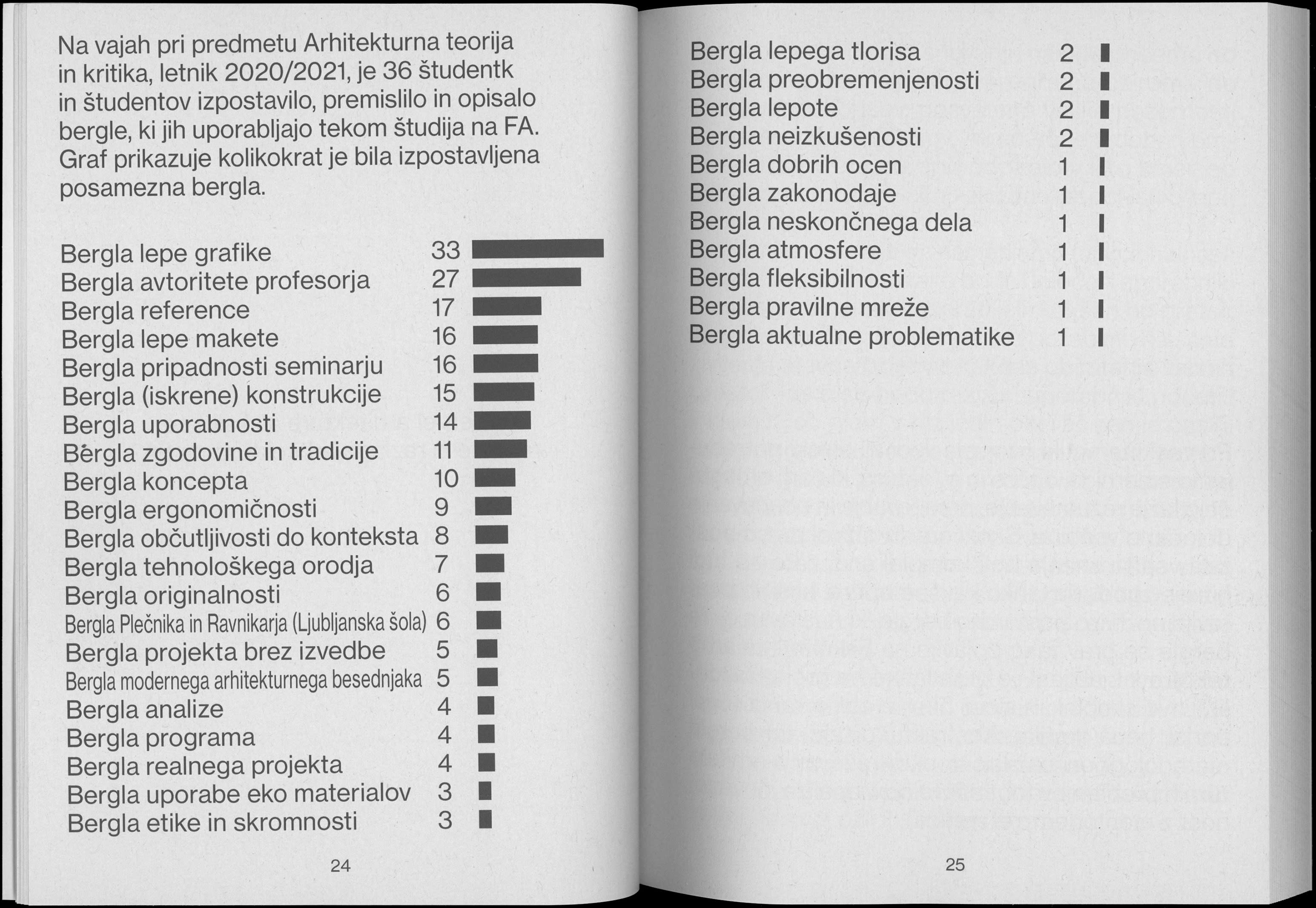 This series gathers student essays from the Architectural Theory and Critique class at the Faculty of Architecture in Ljubljana. A different coated and textured paper is chosen for each cover. The first issue, Bergle, gathers students' responses to to Philip Johnson’s seminal text “7 crutches of architecture” while the second book in the series, titled Architectural body, and focuses on human figures used in representation of architecture in digital renderings.