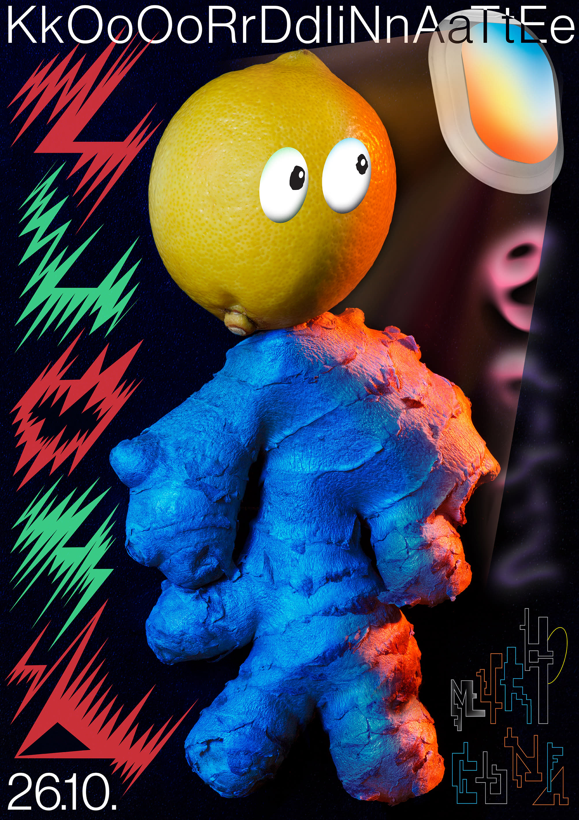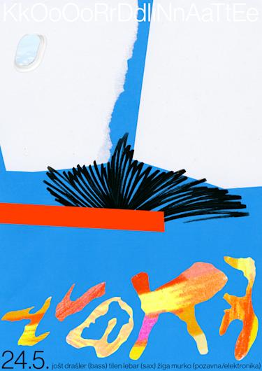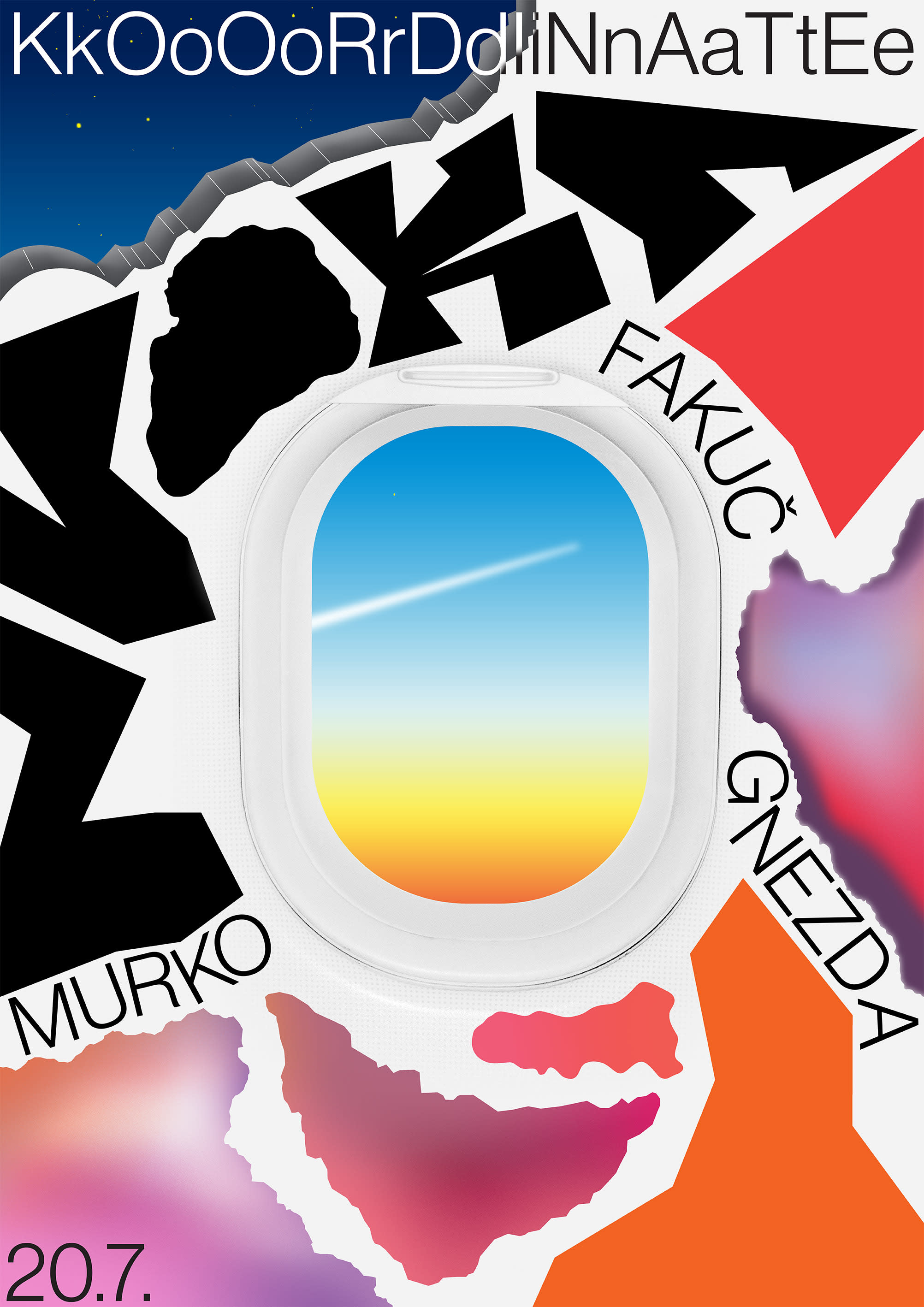 Koordinate zvoka (Coordinates of Sound) was a monthly series of concerts in Ljubljana, organized by Žiga Murko. The series revolved around the idea of an airplane window, a symbol for “I’m going on vacation” in the age of social media. The window was always paired with household chores, showing what you actually do most of the time, as opposed to being on vacation. This didn’t directly relate to the event topic, but rather than making a music-themed concept the series instead got a recognizable visual language that hinted at the experimental nature of the music performed.