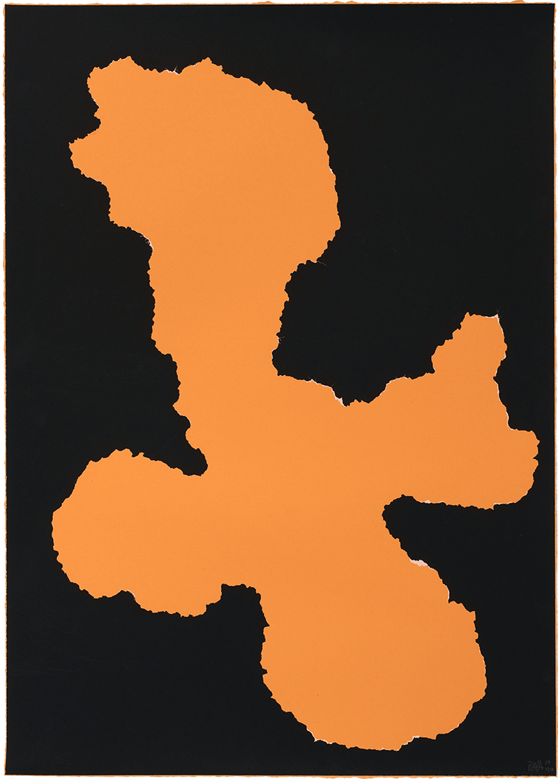 Seasons is a series of twelve prints and functions as a calendar of seasonal food. Each print shows a fruit or a vegetable that is in season that month or from that month on. January is represented by a tangerine, printed with black and white ink on colored orange paper. Instead of using the guillotine, each print was trimmed by hand. The torn ragged edges show the original colors of the paper.